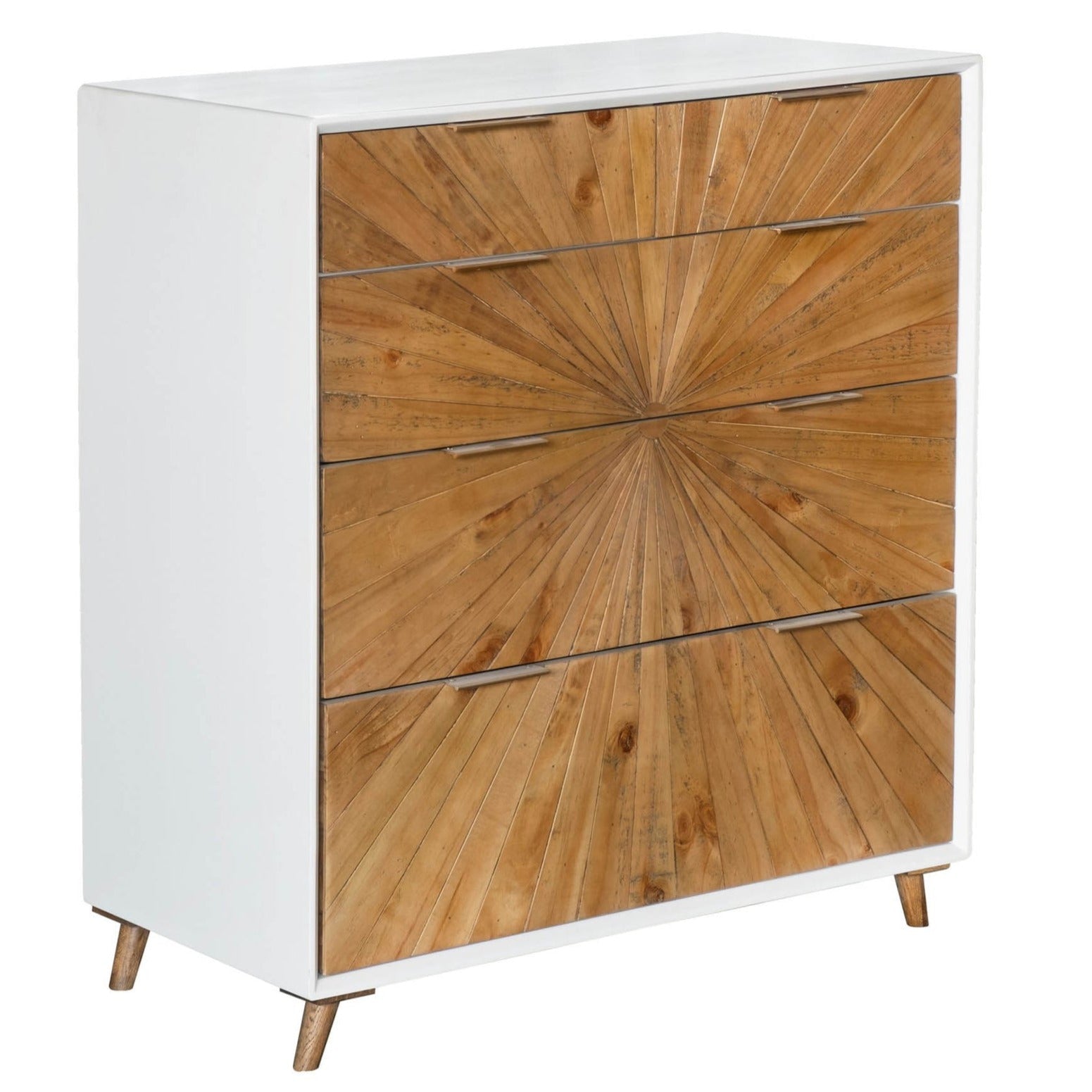 Conquer the art of distinct farmhouse décor with the Two-Tone White Reclaimed Solid Wood Frame Casablanca 5 Drawer Chest! Meticulously crafted from hand-picked reclaimed wood, each chest boasts a stunning fusion of rustic and modern elements. Featuring one-of-a-kind patterns on every drawer, cupboard, and front panel, this chest truly embodies the essence of Moroccan influence. Elevate your home with a truly unique piece of furniture!