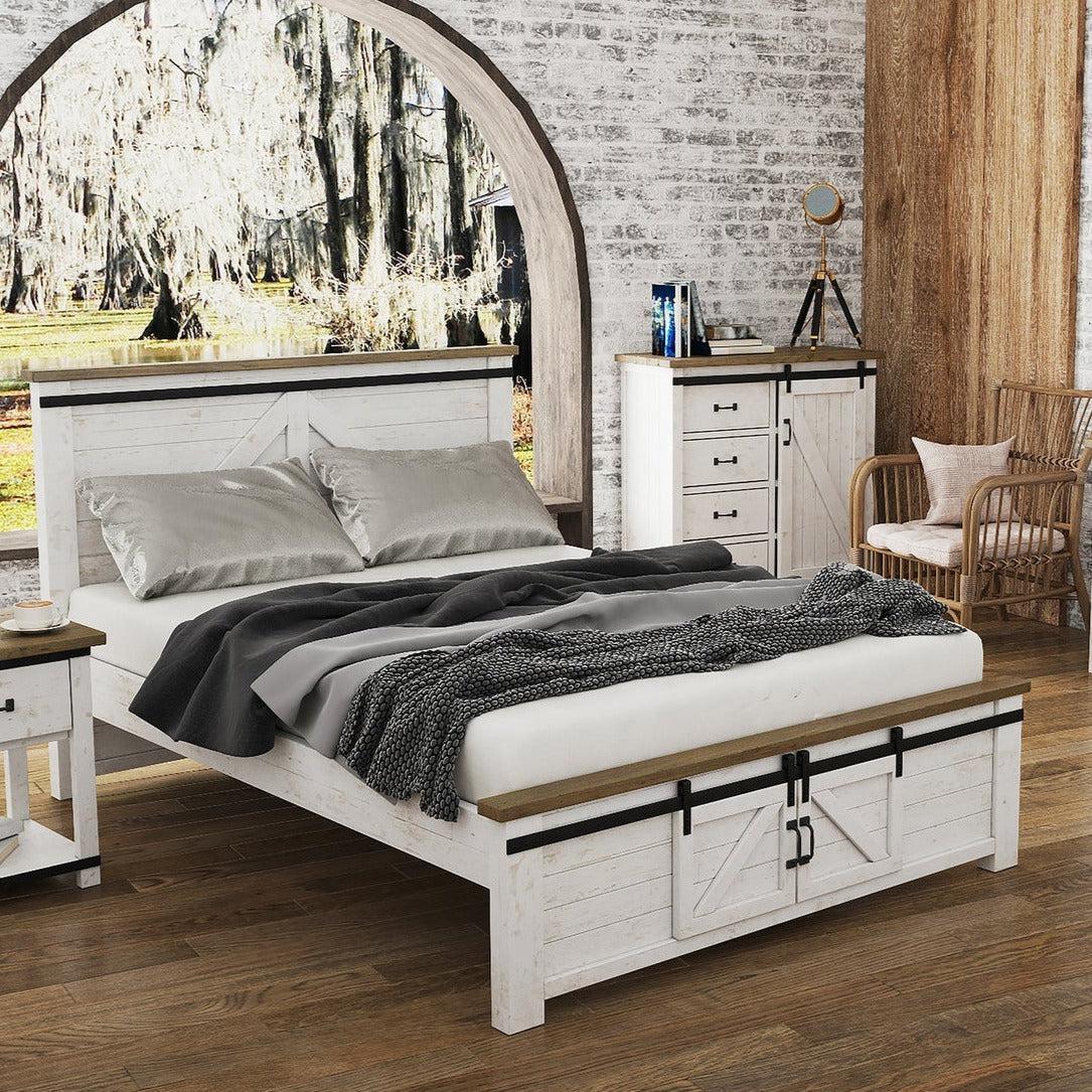 - Color palette and finish: Antique White, Natural Brown