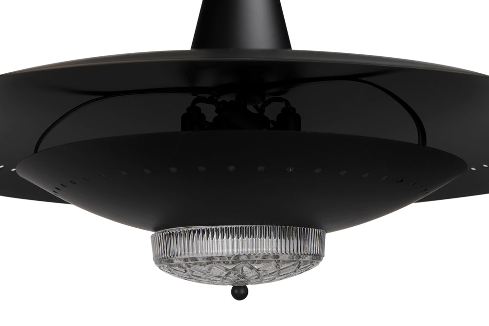 The UFO Pendant is an eye-catching lighting fixture that seamlessly complements a wide range of interior styles, from industrial to modern. Its striking design features a conical top and a circular disk shade, all finished in a sophisticated matte black. This pendant light is not just about looks; it’s built from durable industrial steel and decorative glass, promising a long-lasting addition to any room. The chain suspension adds a touch of charm and ensures secure installation, making it a practical yet stylish choice for your lighting needs. What sets this pendant light apart is its glass orb diffuser, which softens and spreads the light evenly across any space.