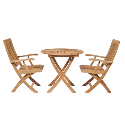 Valencia 3-piece Round Teak Outdoor Bistro Set with Folding Table and Armchairs Features: