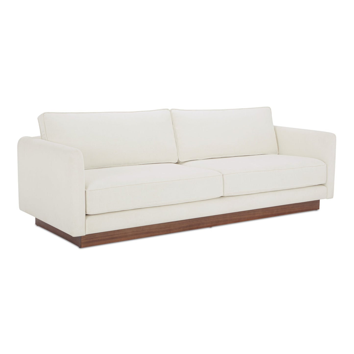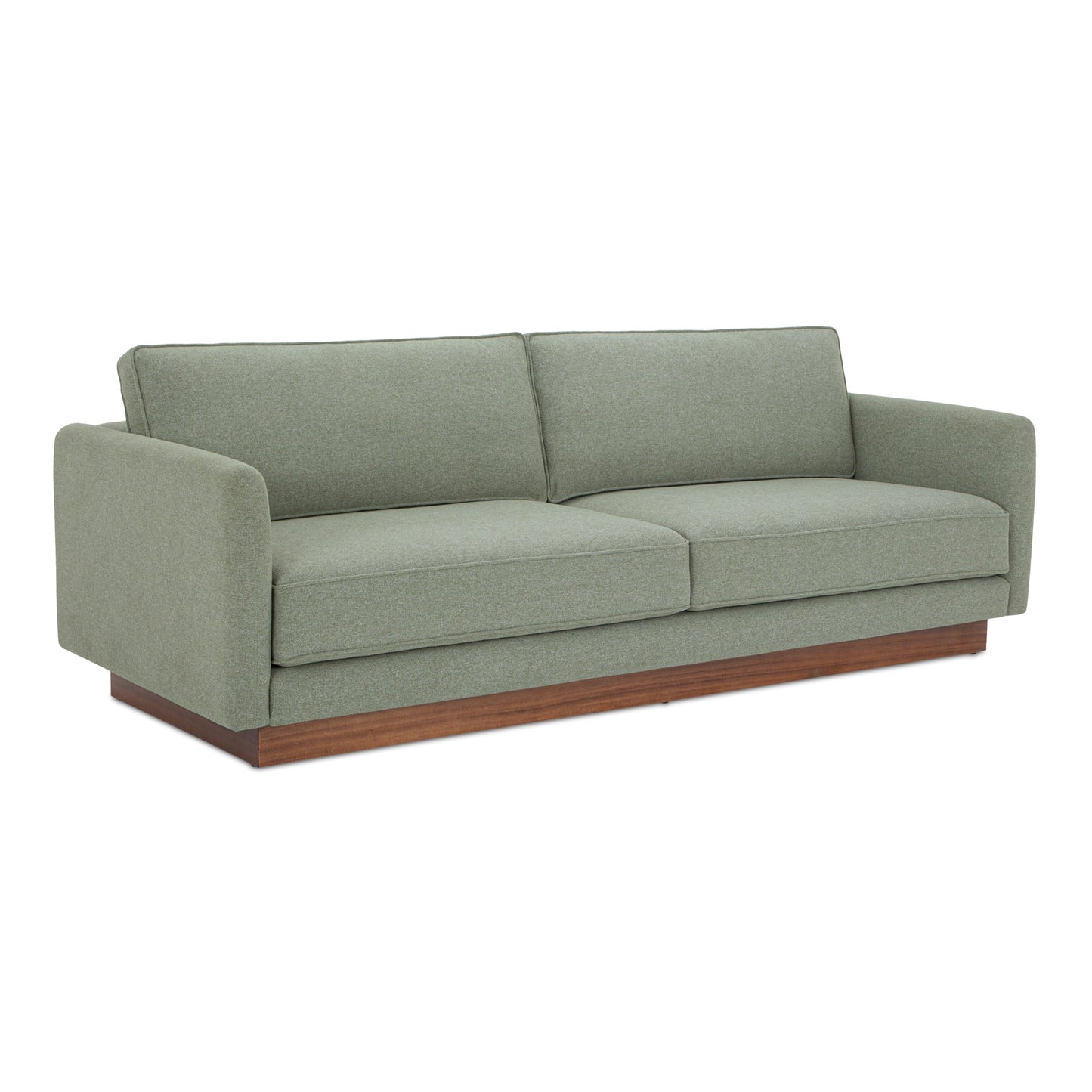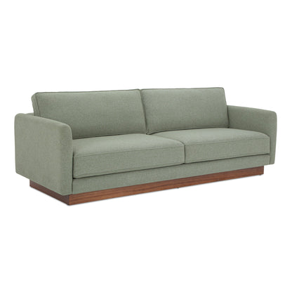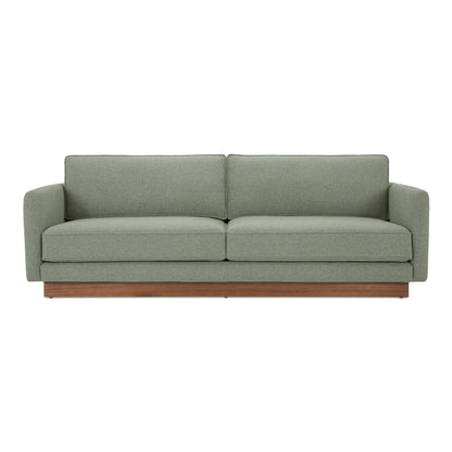 The Vernon Sofa combines timeless mid-century styling with modern functionality, making it a smart and stylish addition to any living room. Available in white, sage, and grey, each version features a wooden plinth base in a walnut tone veneer that lends an elevated, lighter look. The sofa is upholstered in 100% polyester fabric that is OEKO-TEX and Green Guard certified, ensuring a safe, eco-friendly choice for your home. Designed with comfort and practicality in mind, the removable cushions offer easy maintenance, while the foam and fiber seat and back cushions provide plush support. Its spacious design makes it ideal for lounging, entertaining, or everyday relaxation, offering durability and comfort for years to come.