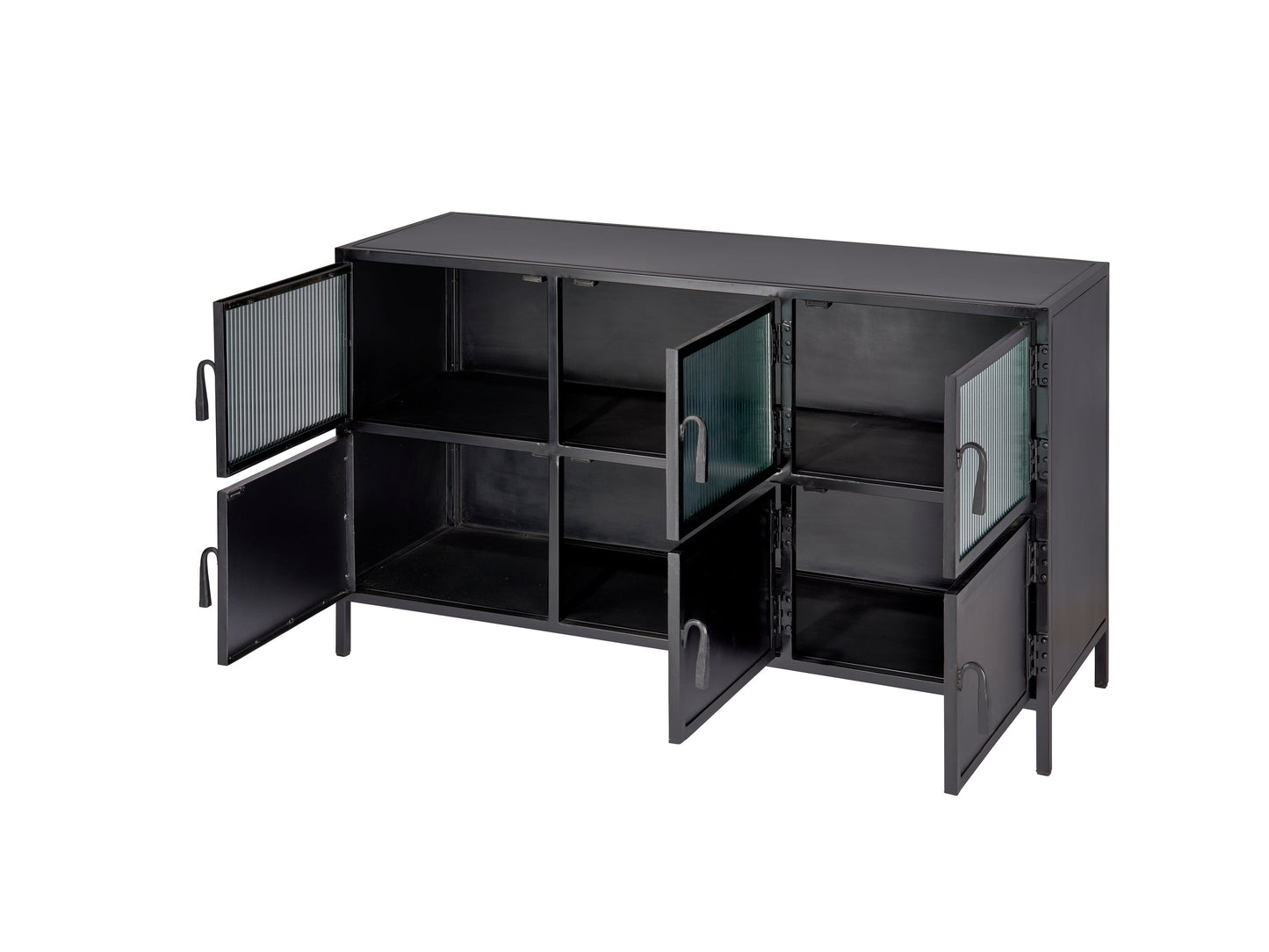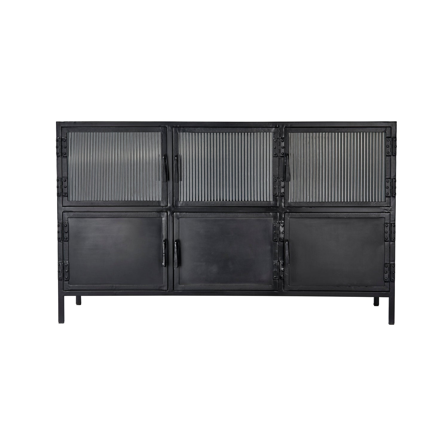 Add a touch of urban flair to your home with the Vitrino 6 Door Console. Its industrial design and mix of metal and glass make it a versatile piece for any room. Handcrafted for durability, it offers ample storage for dishes, media, or extra linens. The perfect addition to any contemporary decor. With an abundance of storage and tons of style, this industrial edged cupboard is ideal for an urban, contemporary décor. Handcrafted of minimally finished metal and clear, reeded glass, this is a piece you can place in any room of the home. Use in a dining area to store serving dishes, in a media room as a unique television stand, or in a bedroom to store sweaters or blankets.