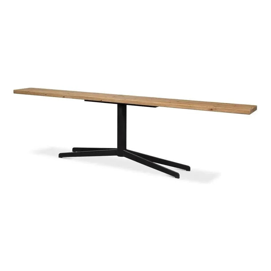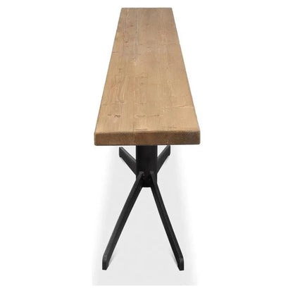 Unleash your daring side with our Wall Console Table Extra Long. Measuring an impressive 125"W x 14"D x 34"H, this industrial masterpiece combines antique elm planks with sturdy cast iron to make a bold statement in any setting. Dare to be different and make a powerful impact with this exceptional design, reminiscent of old factories reborn into modern, chic lofts. Elevate your space and immerse yourself in the realm of industrial allure with our beige Wall Console Table.