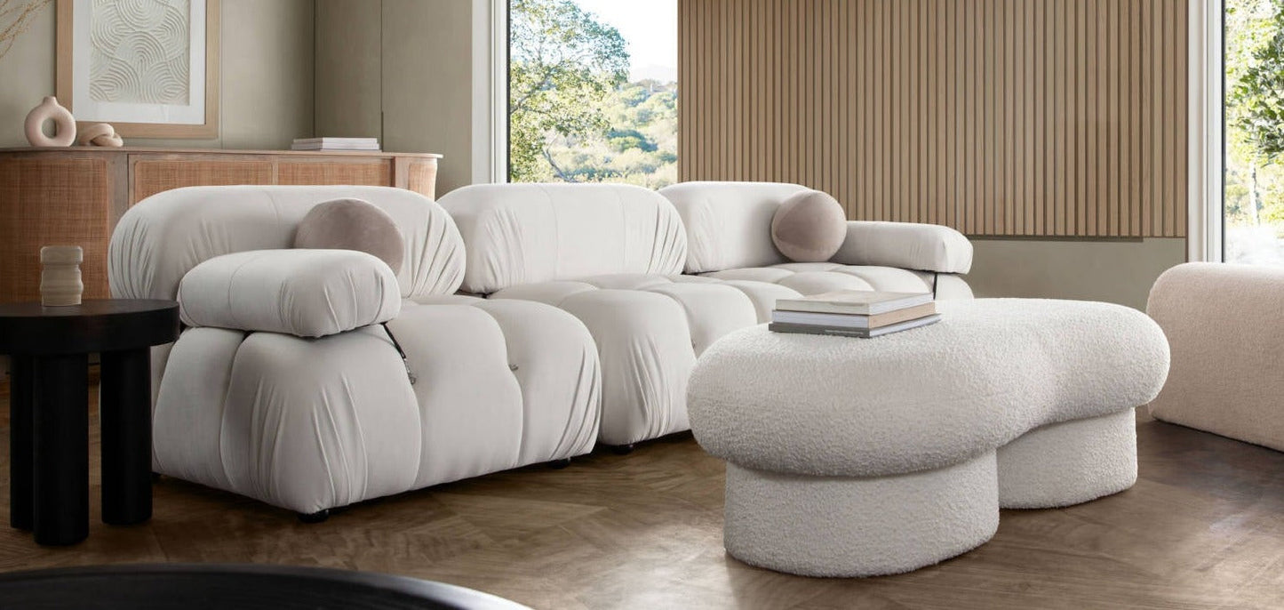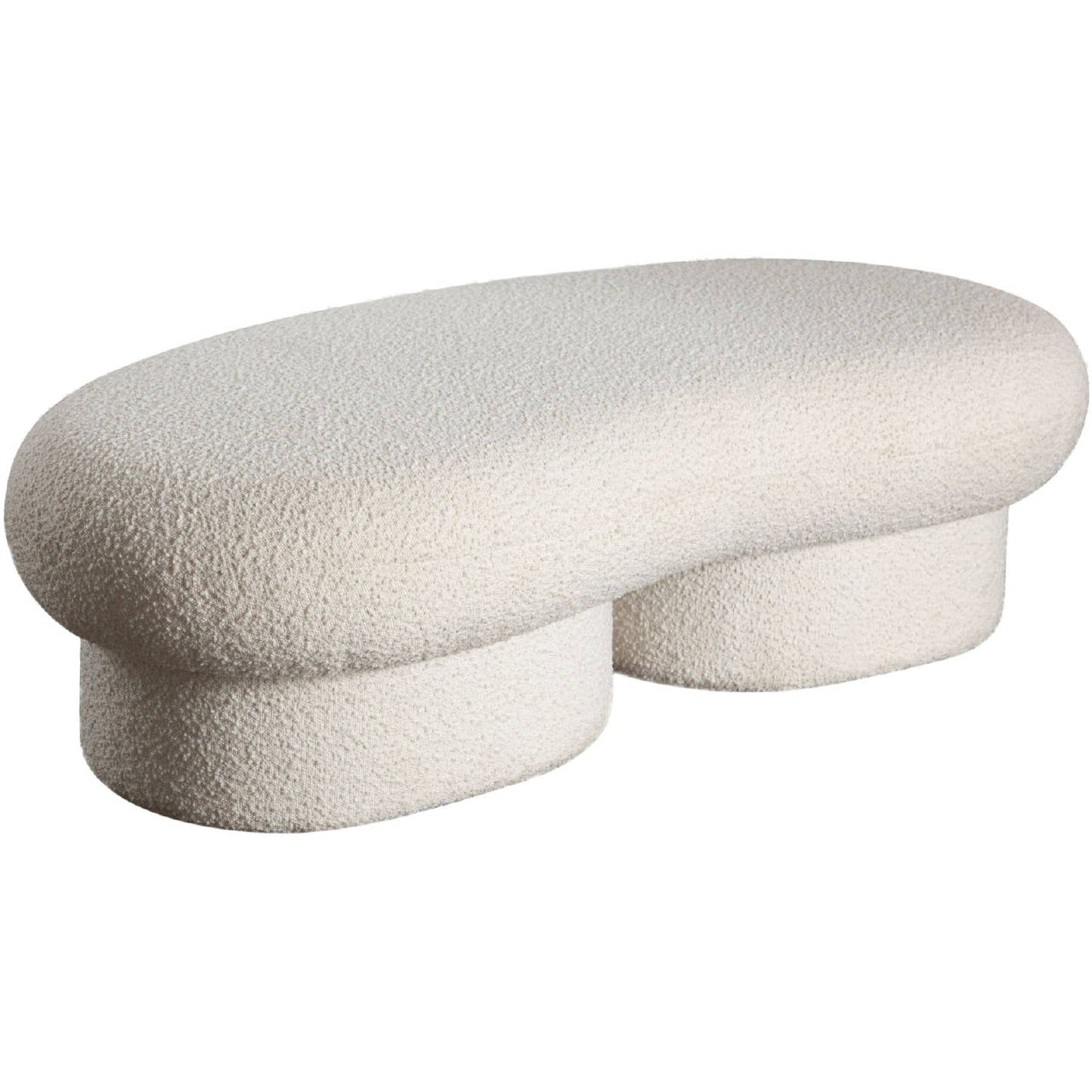 Wave Curved Accent Bench in Ivory Boucle Fabric Features: