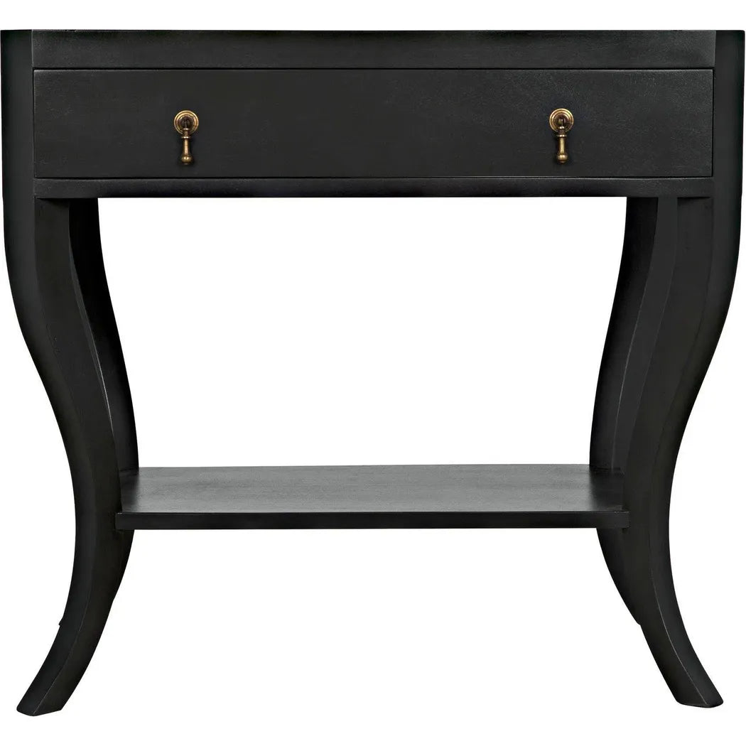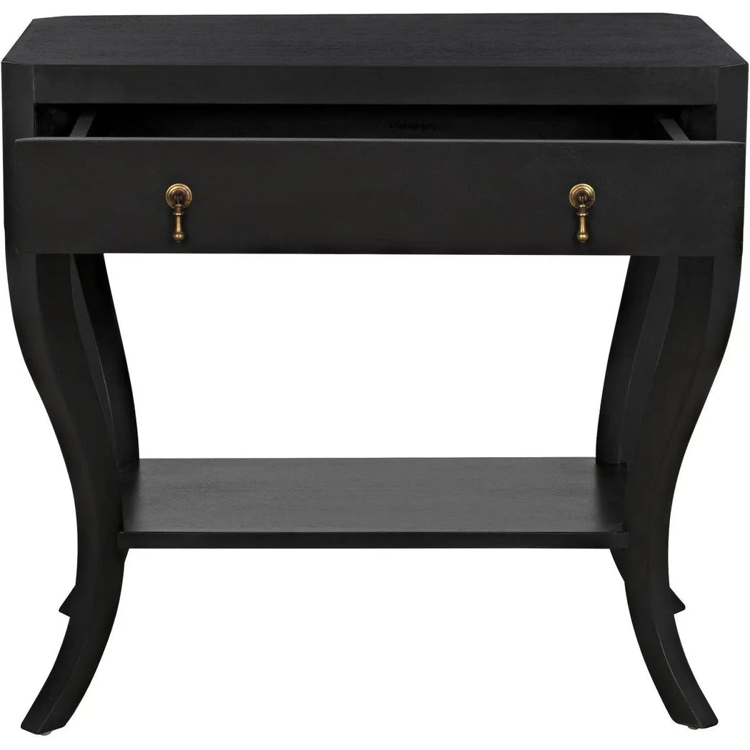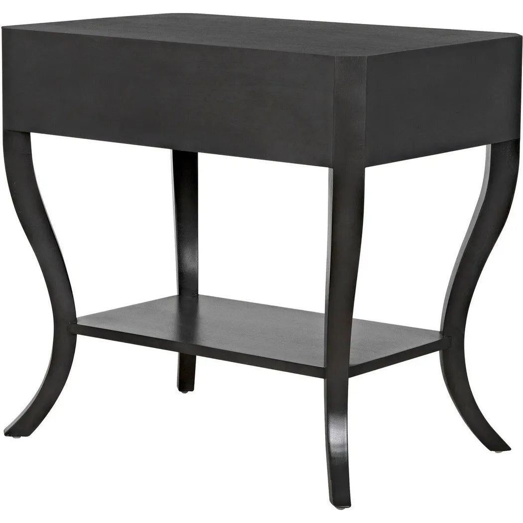 Introducing the Weldon Wood Black Rectangle Side Table. Expertly crafted from solid mahogany, this table features charming cabriole legs and gracefully curved lines. Available in three designer finishes, it adds elegance and durability to any room. Upgrade your space with this deceptively simple yet stylish piece. Distinguished by its gracefully curved lines, charming cabriole legs, and solid mahogany construction, this deceptively simple but expertly crafted side table is available in three hand-applied designer finishes.