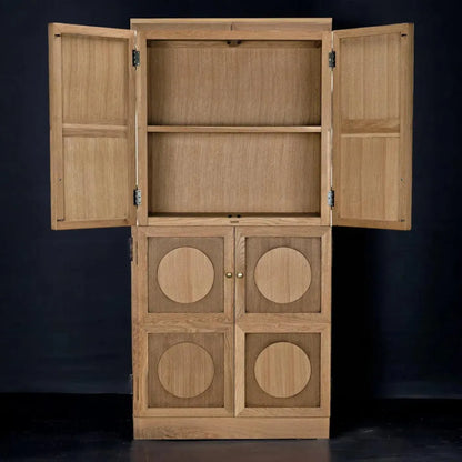 The Wellington Hutch Armoire Tall Bookcase Cabinet exudes sophistication and elegance. Made from premium White Oak, this piece adds luxurious charm and provides ample storage space for books and decor. Its sturdy construction and timeless design make it an ideal addition to any area. Meticulously crafted with superior attention to detail, it boasts a harmonious blend of natural charm and subtle opulence, adding a timeless touch of refinement to any interior. Crafted from high-quality white oak and adorned with brass pulls, this piece is not only stylish but also durable. Elevate your home decor with the Wellington Hutch Armoire Tall Bookcase Cabinet.