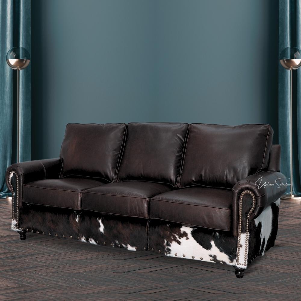 Western Style Leather & Hair On Hide Sofa Dark Brown Marshal Features: