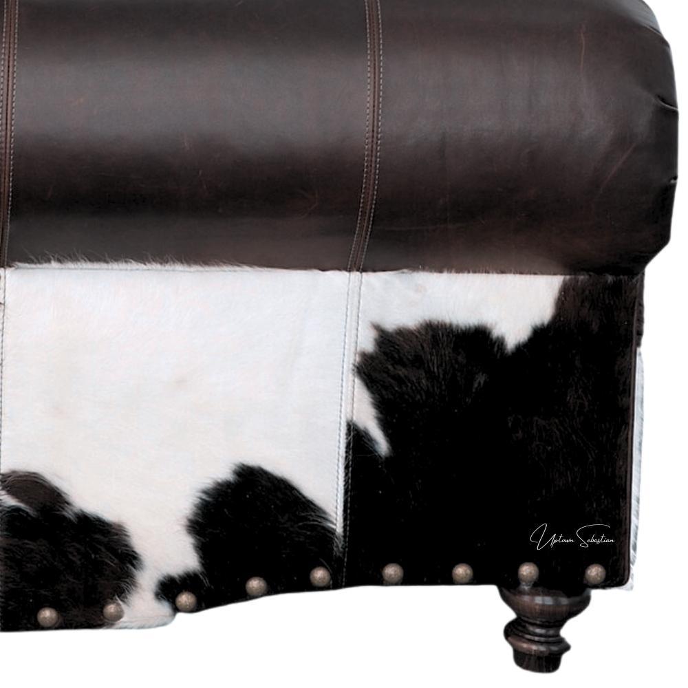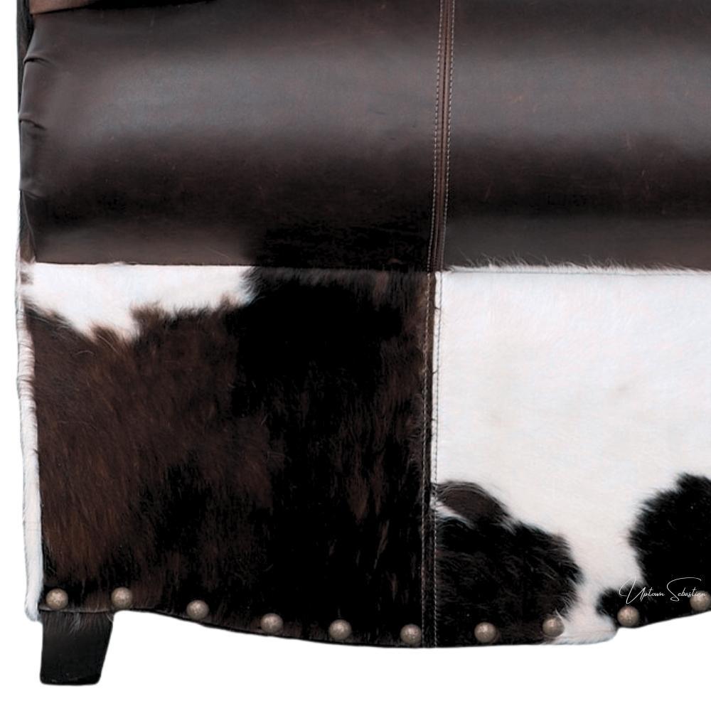 Proudly Cowboy-approved, the Marshal Collection offers a leather and hair-on-hide sofa from Uptown Sebastian that surpasses industry standards. With exceptional durability and top-grade materials like kiln-dried solid wood and medium-firm cushions, this sofa provides comfort and longevity. The 5" thick leather cushions are individually bagged and channeled to prevent any bunching, ensuring incredible softness and consistent support. Additionally, the velcroed seat and back cushions are easily removable and keep from slipping. Trust in this western-style couch, built with a sturdy hardwood frame, high-quality leather, and a "No-Sag" spring system.