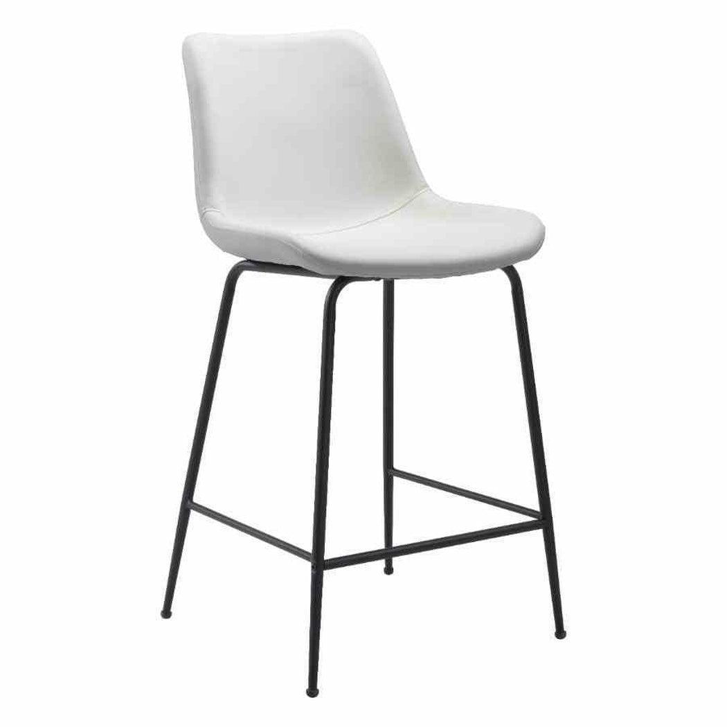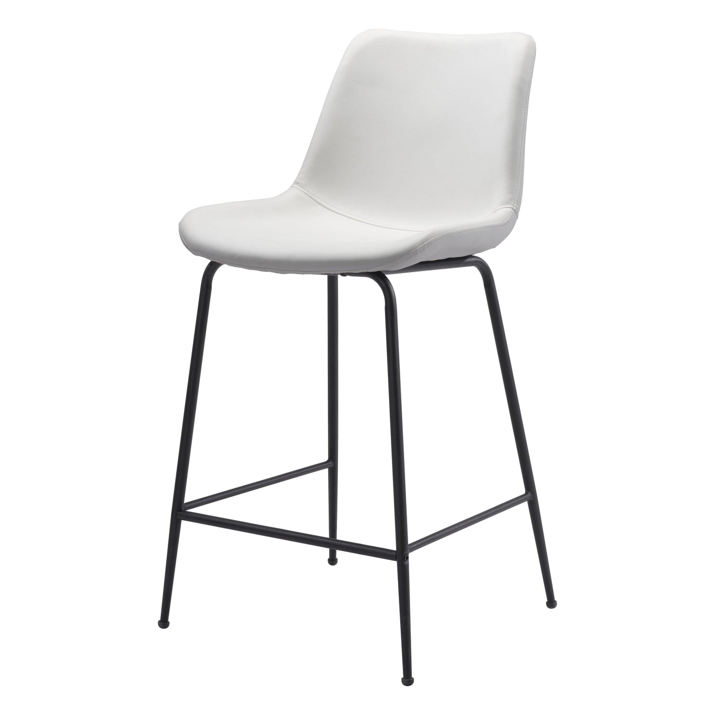 Experience modern urban style and durability with the Byron Counter Chair in White! Featuring a heavy-duty vinyl covering, sturdy steel frame, and sleek matte black legs, this chair is perfect for any kitchen, dining area, or bar. It supports up to 330 lbs, making it both practical and stylish for any occasion. Assembly is easy with tools provided. The Byron Counter Chair boasts mid-century modern urban lines that enhance any space. Its durable vinyl upholstery and robust steel frame ensure longevity, while the matte black coated legs are built to withstand even hospitality environments.