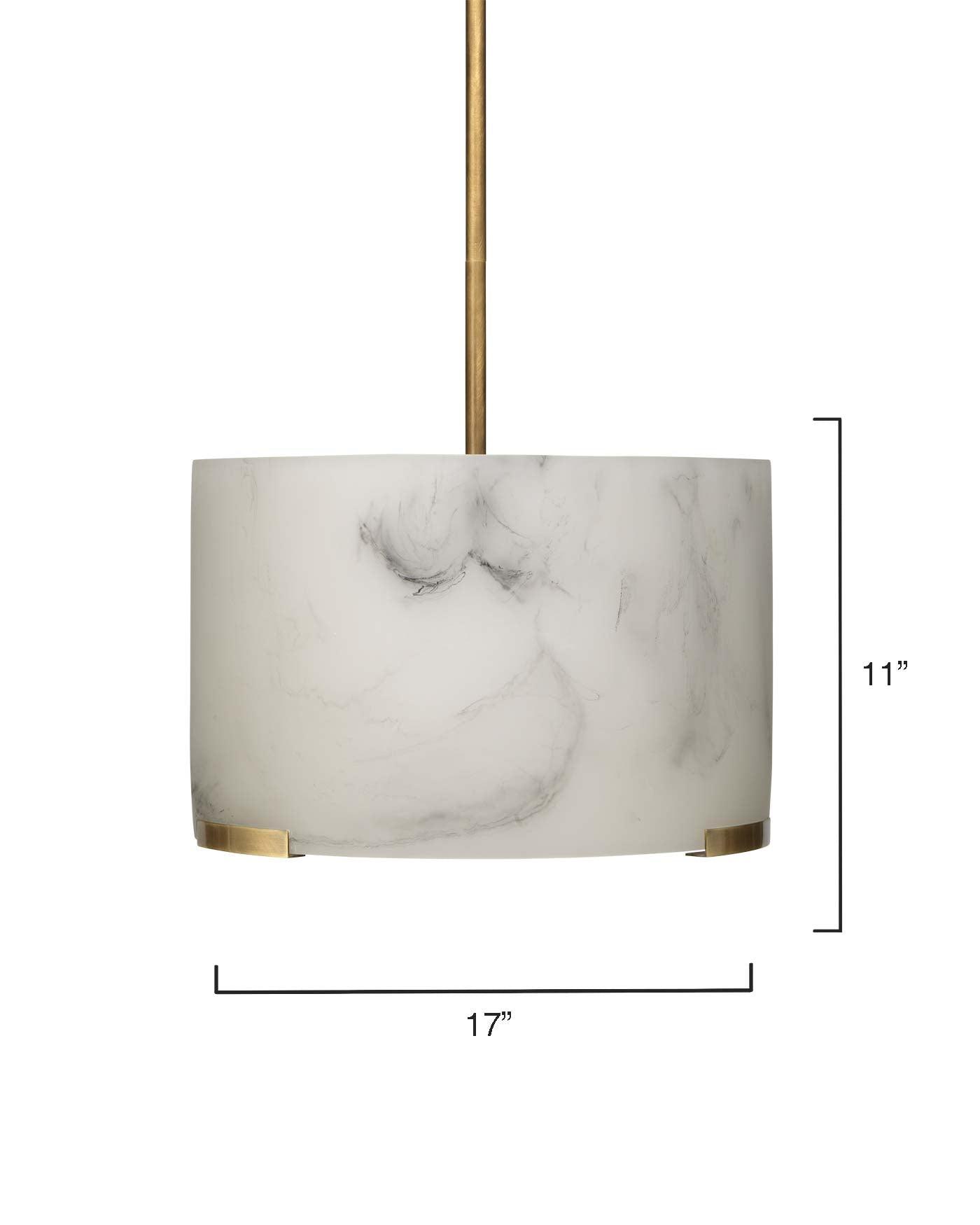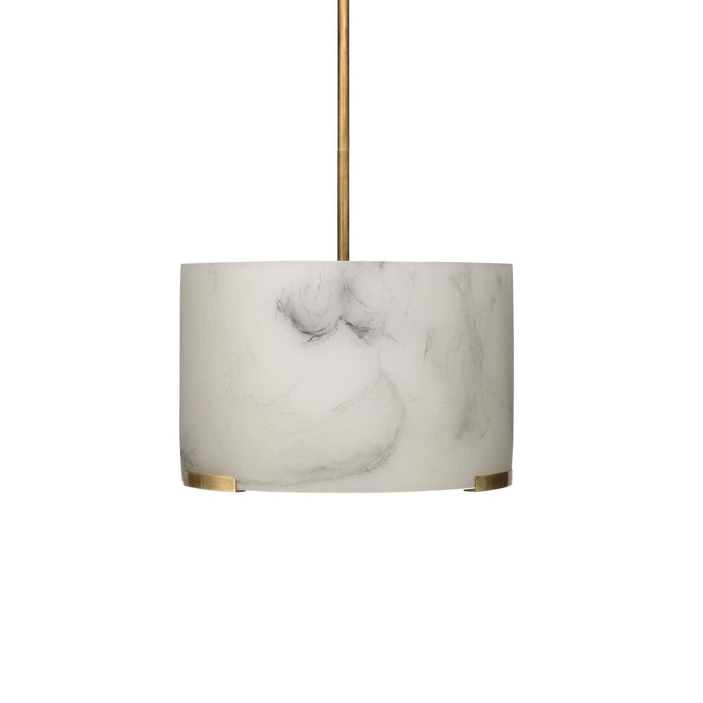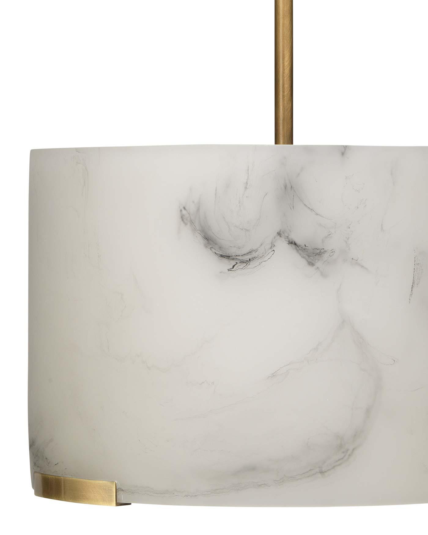 Expertly crafted from high quality resin, the White Resin Elancourt Pendant captures the exquisite details of natural stone. Each piece is individually handcrafted to recreate the delicate swirl patterns and veining found in genuine alabaster. The antiqued brass metal base brings a touch of elegance to this stunning pendant lamp, part of the ElanCourt Collection from Jamie Young Design. Through the use of high quality resin, this pendant expertly showcases the beauty and intricacy of natural stone, with its unique swirl patterns and veining carefully handcrafted by skilled artisans. The antiqued brass finish of the metal base and hardware add a sophisticated touch to this timeless piece from the White Resin Elancourt Pendant collection.