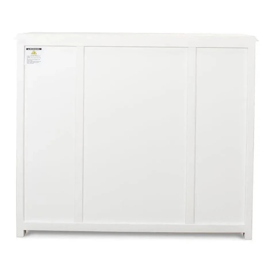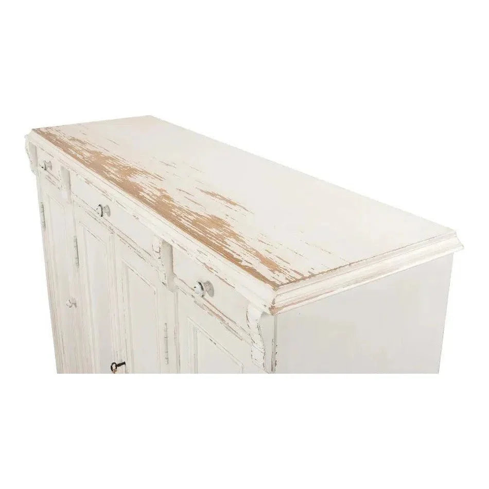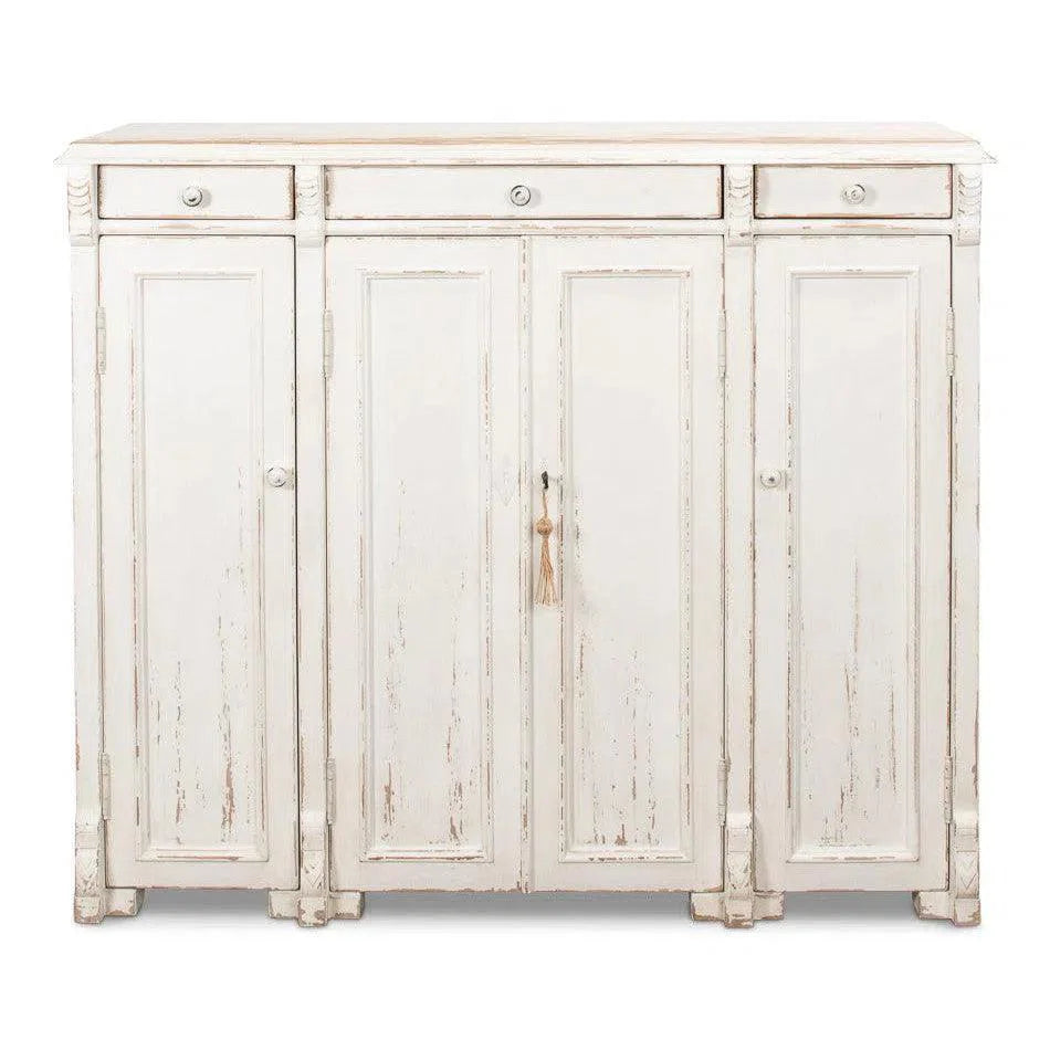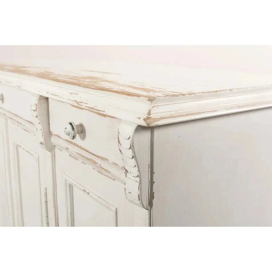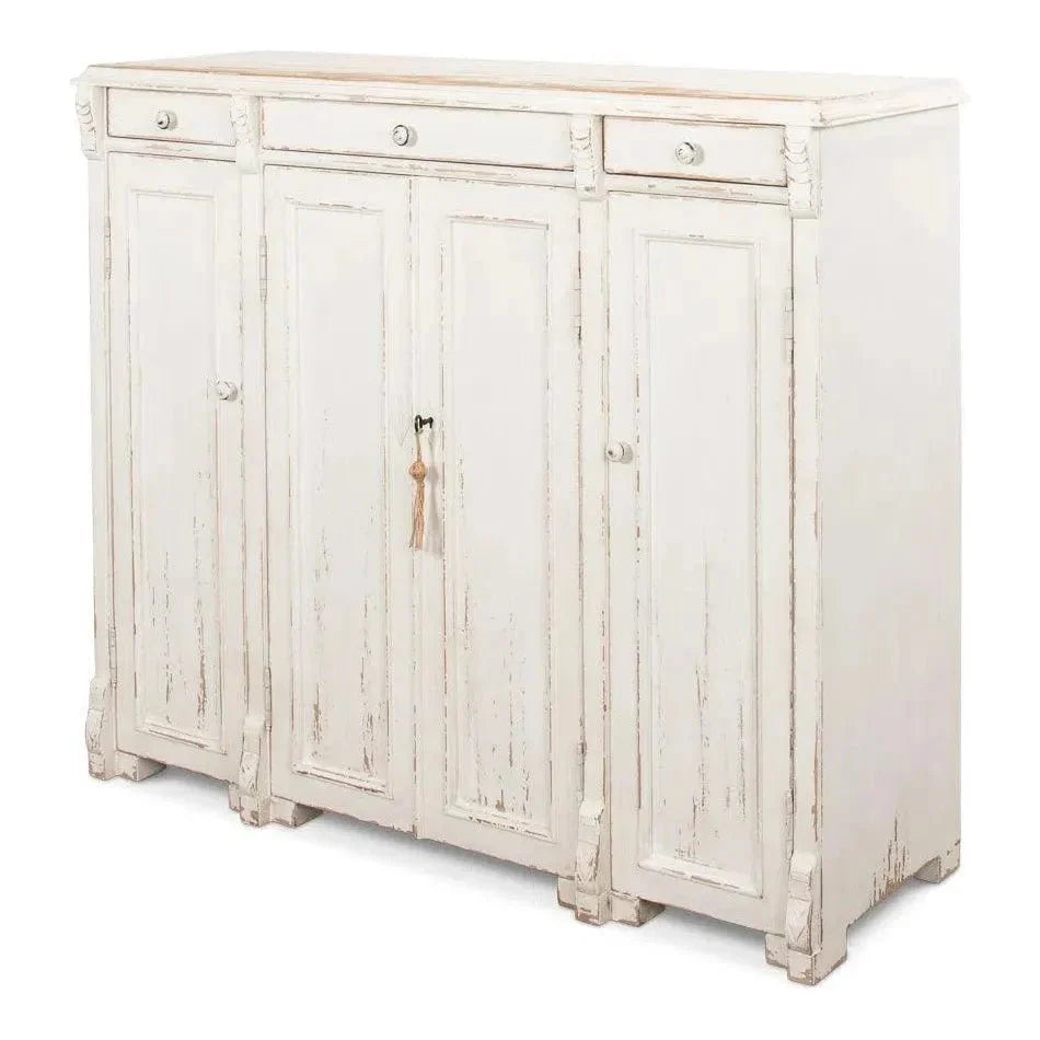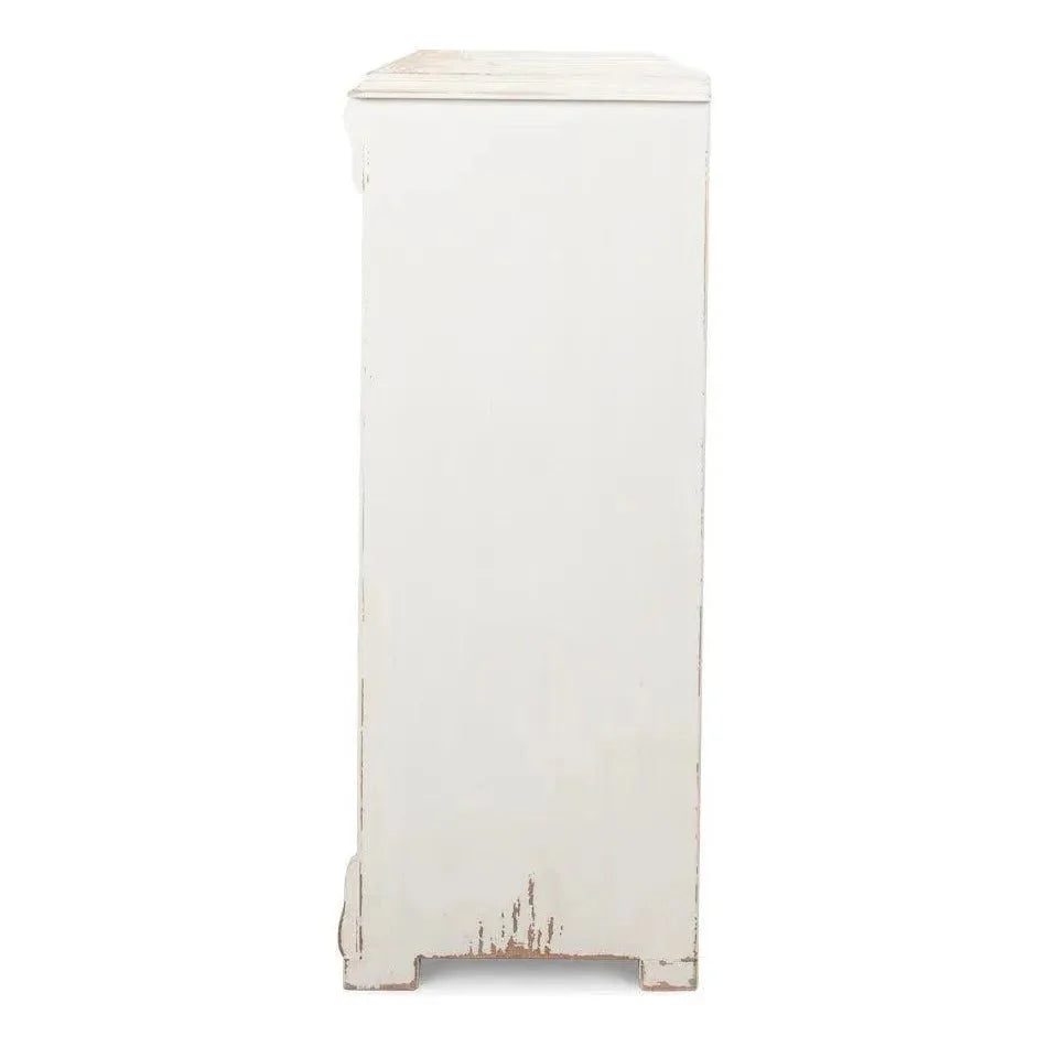 Unlock the daring aura of coastal escapes with the White Swan Tall Sideboard! This striking piece, painted in pure white, measures 51"W x 18"D x 43"H, with impeccable attention to detail. Constructed from Reclaimed Pine beams and given a delicate whitewash, it conceals treasures within its exterior. And those hand-turned iron knobs? A true testament to exceptional craftsmanship. Your home deserves a touch of refinement, transforming every meal into a seaside soirée.
