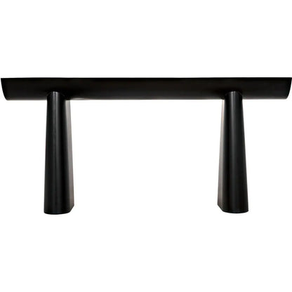 As a product expert, the Winston Black Steel Rectangle Console Table seamlessly merges contemporary style with enduring practicality. Constructed from black finished metal, this multipurpose piece lends a sleek and sophisticated element to any space. With its understated and adaptable design inspired by traditional altar tables, it effortlessly complements any aesthetic. Its pared down construction embodies the concept of simplicity. Our Winston console table, crafted from black finished metal, updates the classic altar table silhouette, resulting in a striking and meditative design that effortlessly enhances any room. The Winston Black Steel Rectangle Console Table harmoniously combines modern design with timeless functionality.