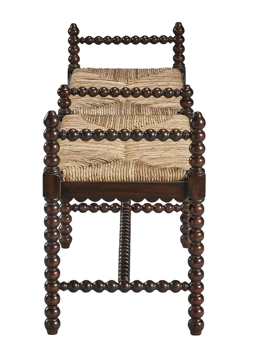 Transform your space into something extraordinary with this unique bench. The intricate bobbin turnings on the arms, legs, and stretchers add subtle character, while the hand-tied rush seat provides comfort. Experience the satisfaction of repurposing this versatile bench from entryway necessity to chic table side or cozy bed companion.