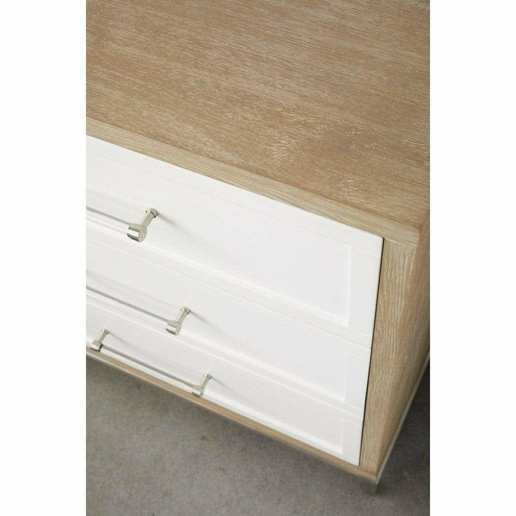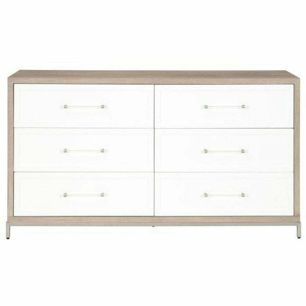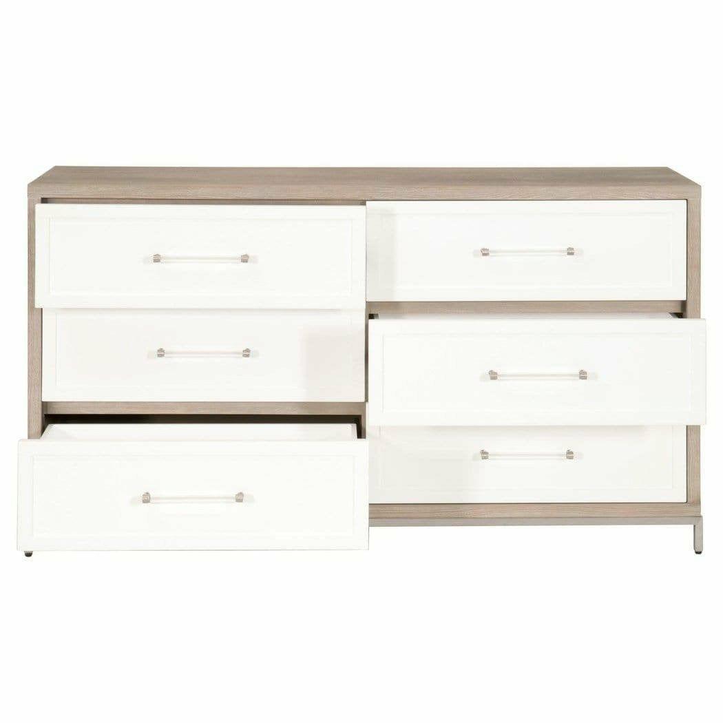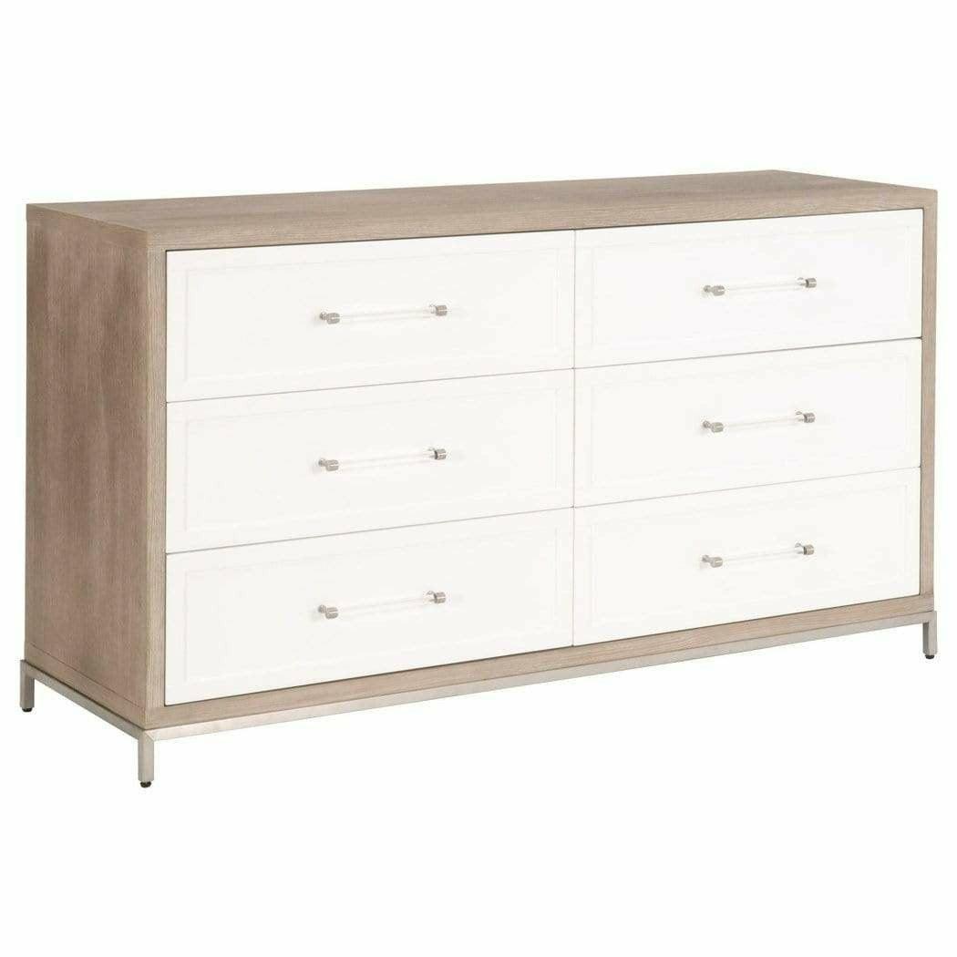 Wrenn 6-Drawer Double Dresser Natural Gray Acacia, Matte White, Brushed Stainless Steel Features: