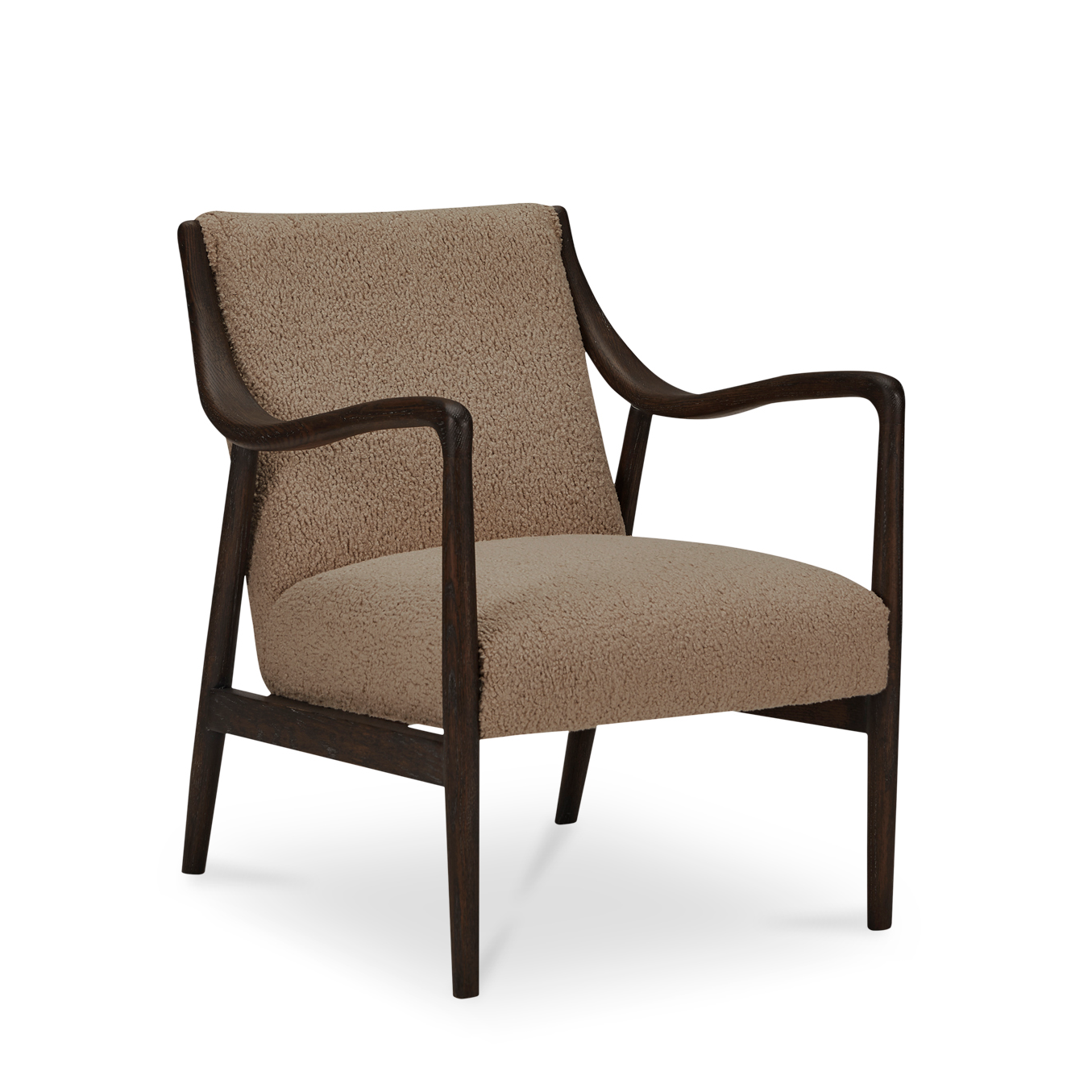 The Yates accent chair combines the warmth of solid oak with the soft embrace of faux shearling, offering both comfort and style. Inspired by mid-century design, its slim frame and deep brown finish highlight the natural grain of the wood, adding a classic charm to any space. Ideal for living rooms or reading nooks, this chair provides a cozy yet elegant touch to your home. Comfort and functionality are key in the Yates accent chair, featuring curved arms for ergonomic support and a wider armrest for added relaxation. Upholstered in 100% polyester faux shearling, it promises a soft seating experience, while the durable foam and fiber fill ensure long-lasting comfort.