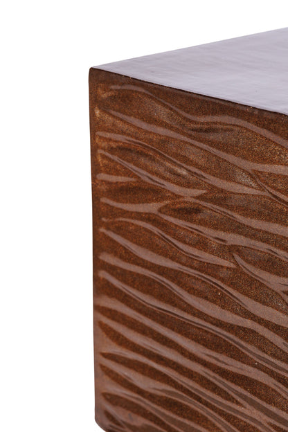 Expertly crafted, each Zen Garden Stool showcases artisanal craftsmanship with unique surface variations and glaze details. Its weather-resistant nature ensures durability, allowing for seamless use both indoors and outdoors. Resistant to scratches and chips, this table is designed for longevity and easy maintenance. Made from recyclable, locally sourced materials, it supports sustainability while providing a sophisticated and functional design. With its thoughtful construction, this stool serves as a perfect statement piece in living rooms, patios, or gardens.
