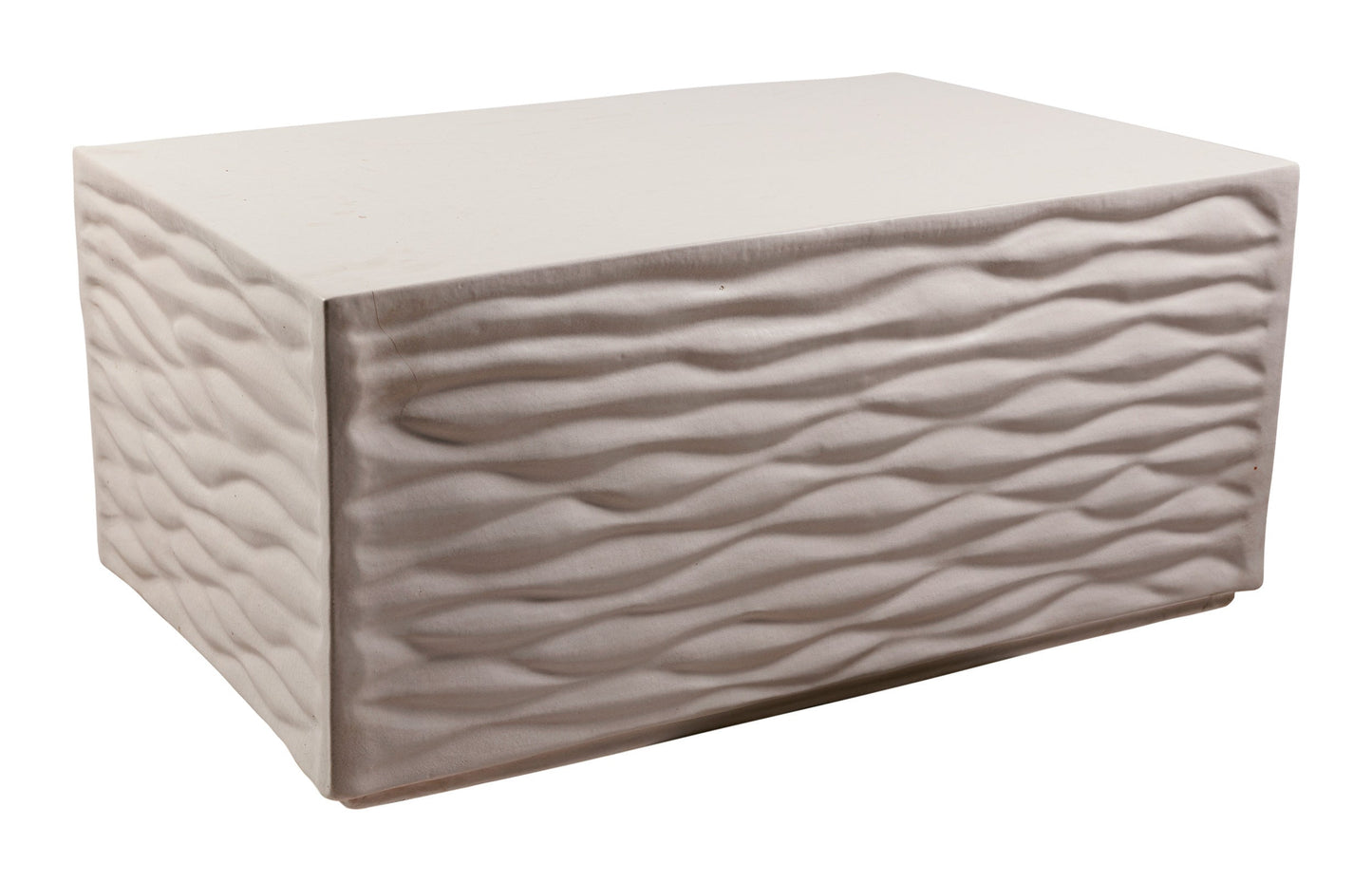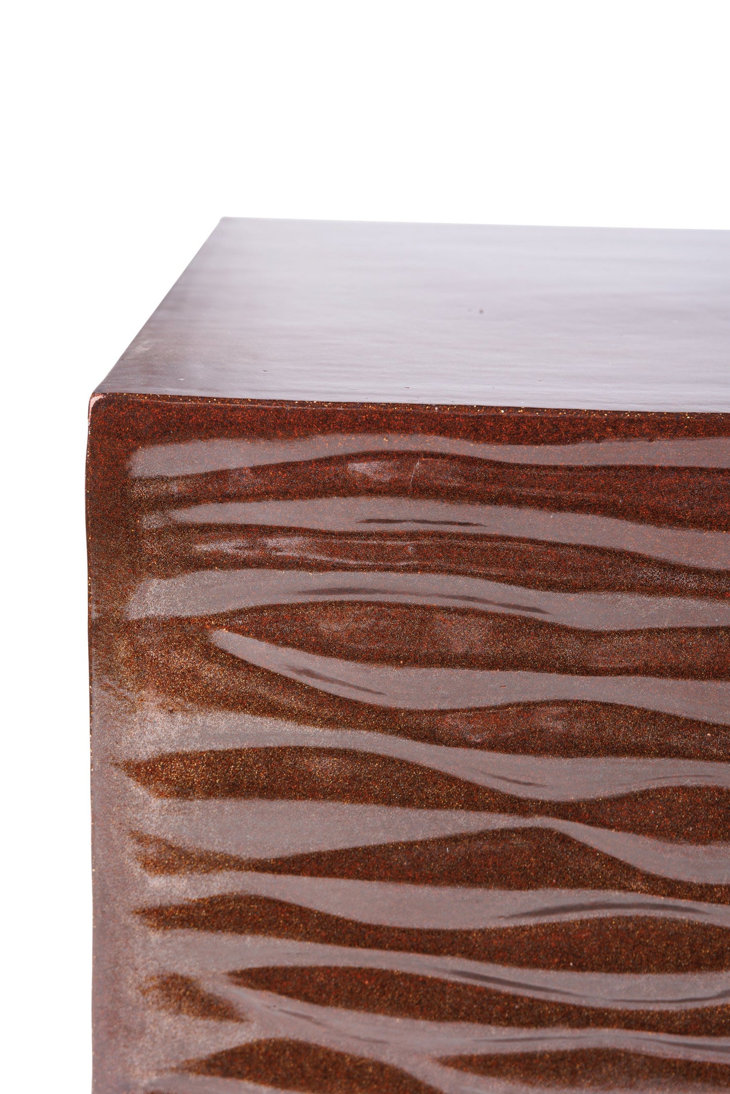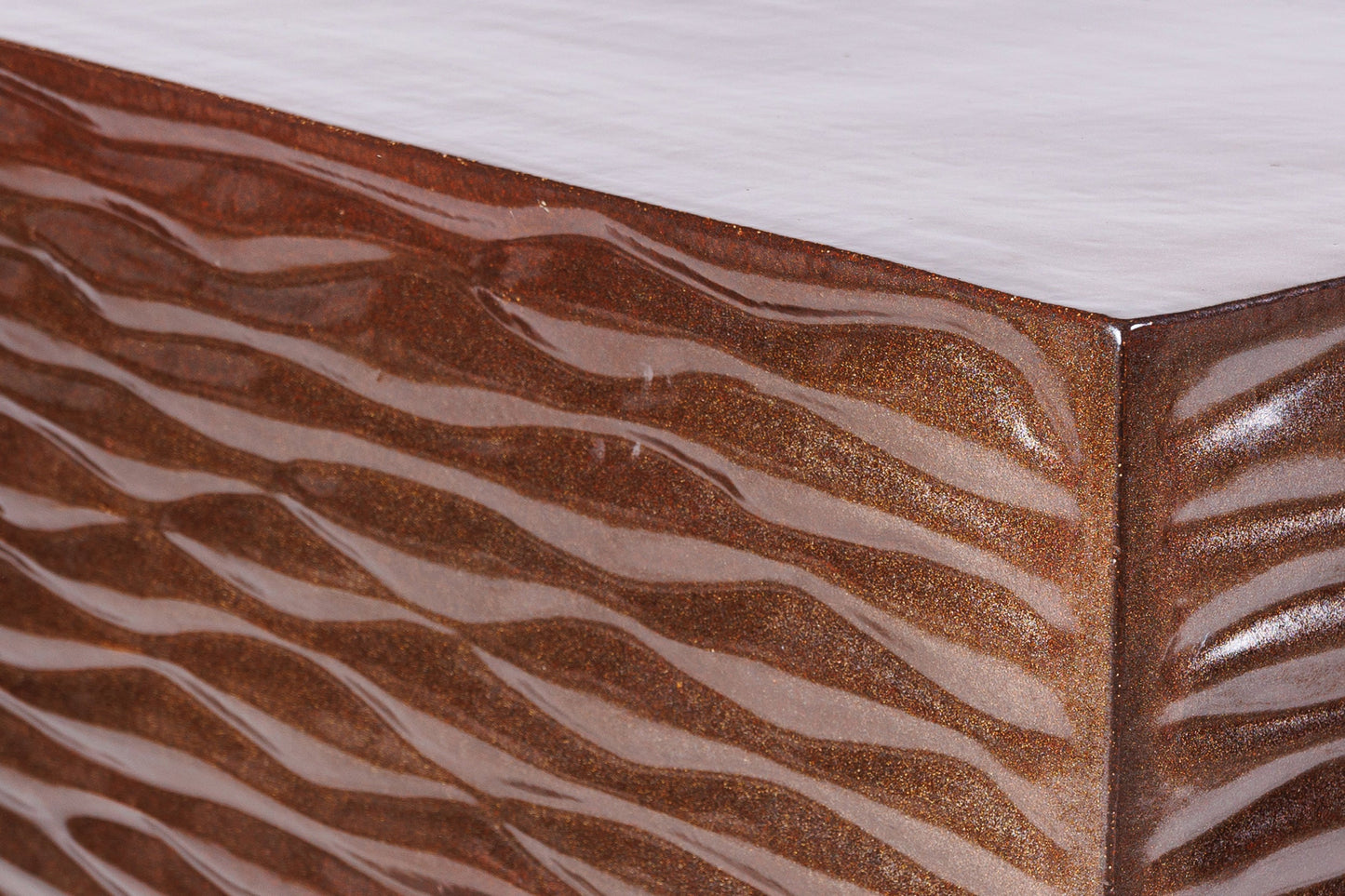The Zen Coffee Table is a stunning piece that combines handmade glazed ceramic with a linen semi-gloss or pyrite brown gloss finish. Its textured wavy surface brings a touch of artistry and elegance, perfect for adding character to any living space. Crafted by skilled artisans, each table showcases unique, imperfect surfaces and glazes, ensuring that no two pieces are the same. The earthy neutral tones, enhanced by bursts of vibrant colors, draw inspiration from natural landscapes and modern architecture, making it a versatile addition to various decor styles. Designed for both indoor and outdoor use, this table transitions seamlessly between spaces, offering flexibility for different settings. Its weather-resistant properties, along with its resistance to scratches and chips, ensure it maintains its allure over time. Made from recyclable and locally sourced materials, it supports sustainability and aligns with an eco-conscious lifestyle. With easy care maintenance, this table requires minimal upkeep while providing lasting beauty and function. Whether placed in a cozy living room or an airy patio, the Zen Coffee Table enhances your space with its striking presence and handcrafted charm.