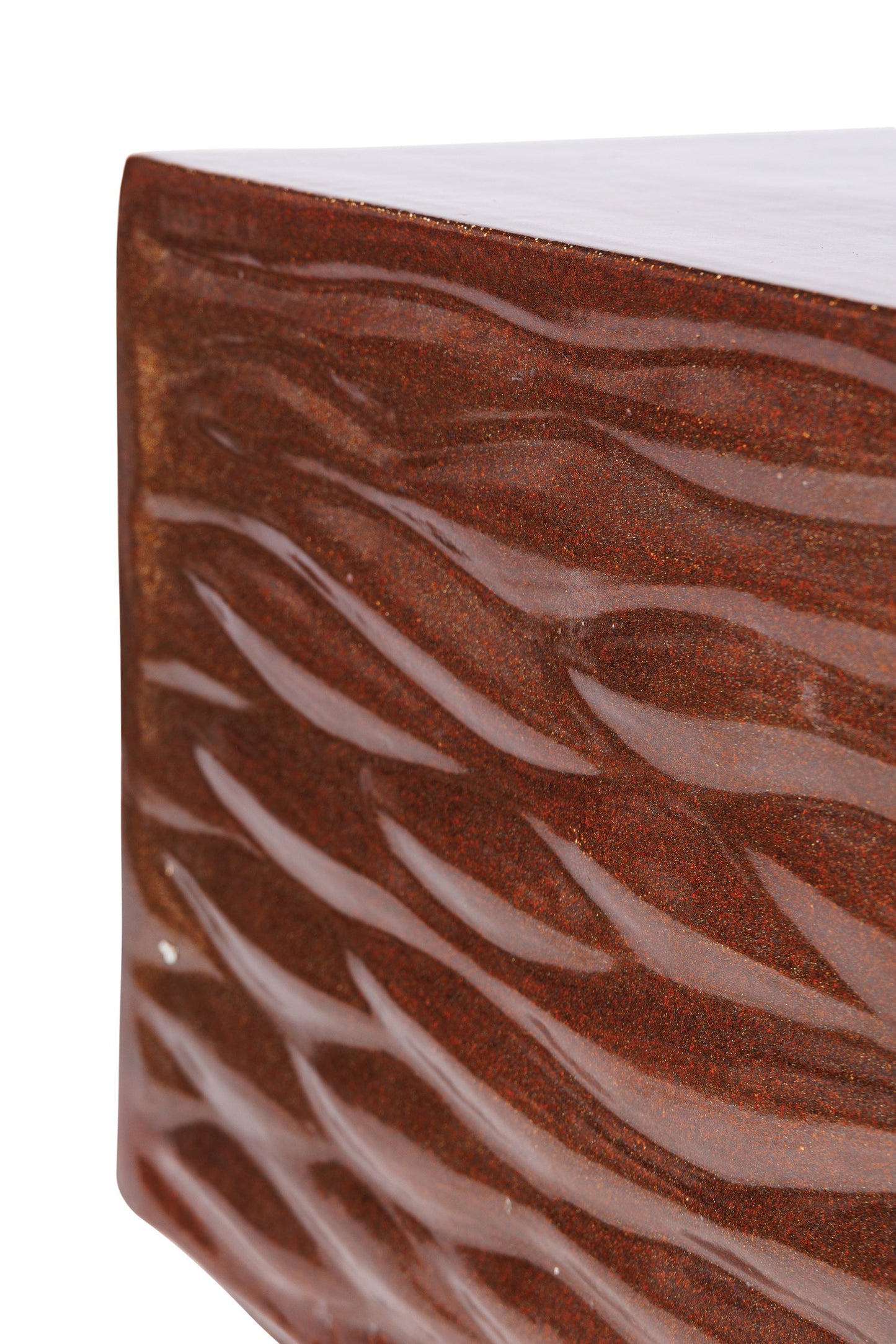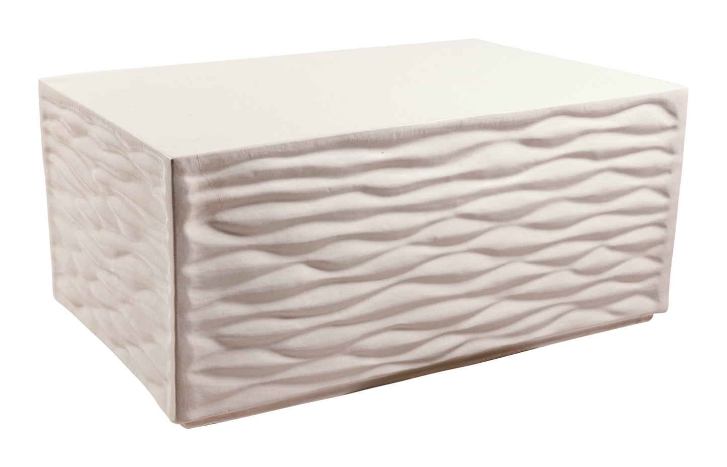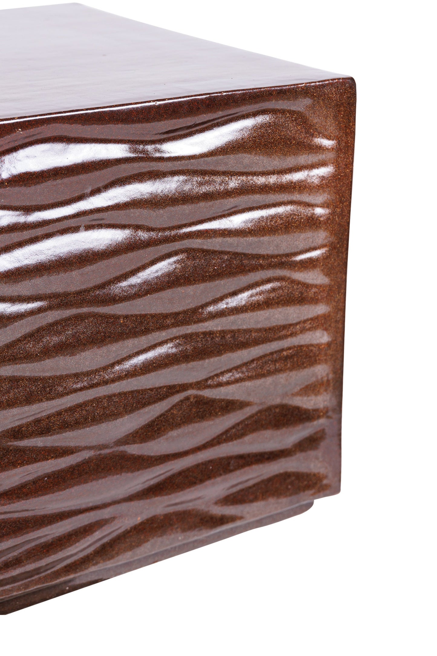 The Zen Coffee Table is a stunning piece that combines handmade glazed ceramic with a linen semi-gloss or pyrite brown gloss finish. Its textured wavy surface brings a touch of artistry and elegance, perfect for adding character to any living space. Crafted by skilled artisans, each table showcases unique, imperfect surfaces and glazes, ensuring that no two pieces are the same. The earthy neutral tones, enhanced by bursts of vibrant colors, draw inspiration from natural landscapes and modern architecture, making it a versatile addition to various decor styles. Designed for both indoor and outdoor use, this table transitions seamlessly between spaces, offering flexibility for different settings. Its weather-resistant properties, along with its resistance to scratches and chips, ensure it maintains its allure over time. Made from recyclable and locally sourced materials, it supports sustainability and aligns with an eco-conscious lifestyle. With easy care maintenance, this table requires minimal upkeep while providing lasting beauty and function. Whether placed in a cozy living room or an airy patio, the Zen Coffee Table enhances your space with its striking presence and handcrafted charm.